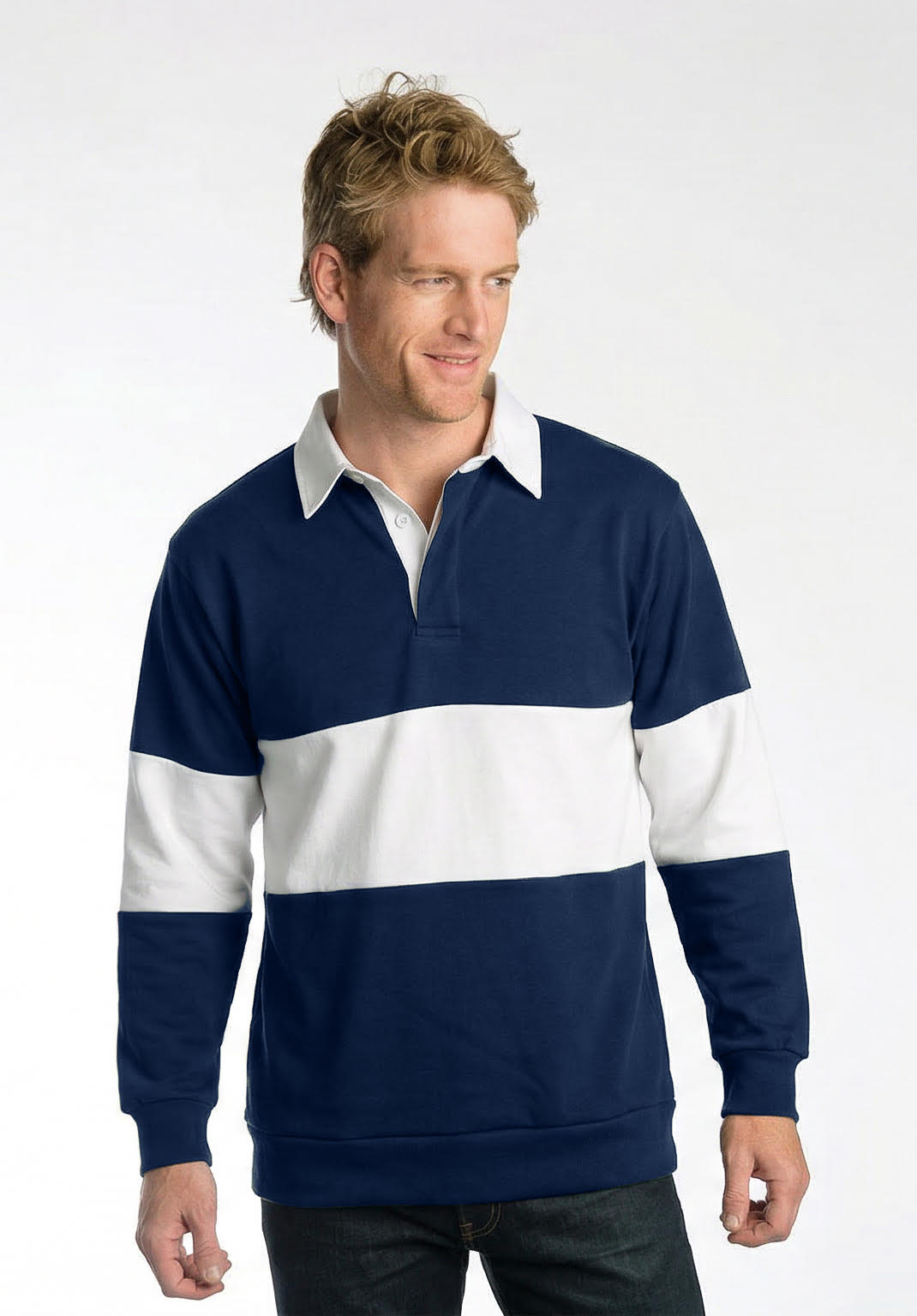 Mens Contrast Rugby Shirts Featuring a 3 button placket White twill collar, with white contrast stripe Fabric: 100% cotton fleece Colours: As per colour selection Sizes: XS to 6XL Mens and Ladies